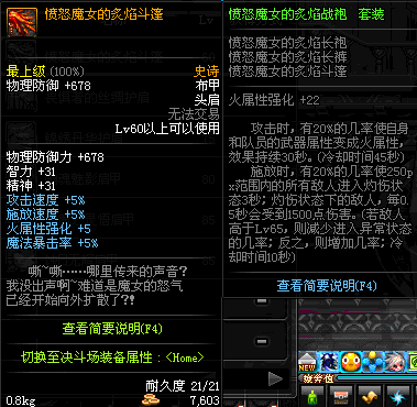 | 60 | 愤怒魔女的炙焰斗篷 | *在NPC歌兰蒂斯·格拉西亚的物品店购买 | 愤怒魔女的炙焰战袍 套装 | |