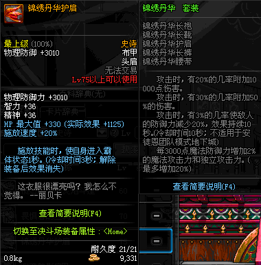 | 75 | 锦绣丹华护肩 | *Lv74~81深渊地下城怪物掉落 | 锦绣丹华 套装 | |