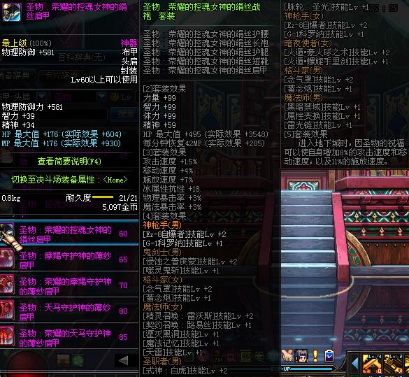 | 60 | 圣物 :荣耀的控魂女神的绢丝肩甲 | *Lv58~66普通地下城怪物掉落 |