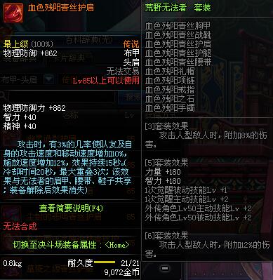 | 85 | 血色残阳青丝护肩 | *昨日之巴斯顿 掉落 (在远古地下城里出没。) *从NPC鲁特的物品店出售的[血色残阳防具礼盒]中获得 |