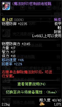 | 60 | (魔法封印)密制战地短靴 | *Lv58~66普通地下城怪物掉落 *完成[意料之中]任务 *使用Lv58~66怪物掉落的设计图进行制作 |