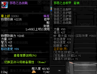 | 辅助装备: | 全职业 鬼剑士 女鬼剑 女格斗 男格斗 神枪手 女枪手 魔法师 男法师 圣职者 暗夜使者 守护者 |