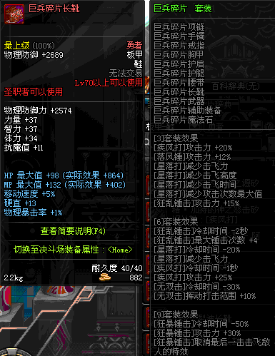 | 70 | 圣物 :荣耀的摩羯守护神的钛钢短靴 | *Lv70~76普通地下城怪物掉落 |