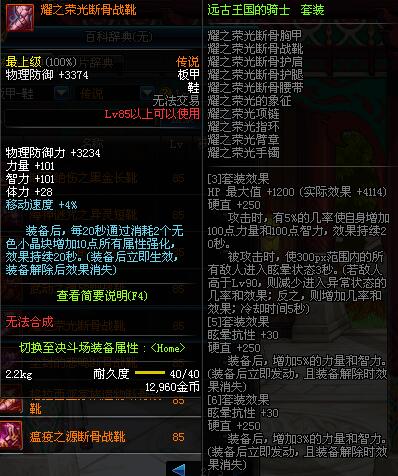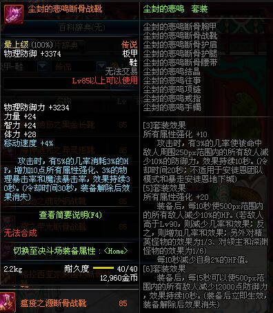 | 85 | 霸域英豪战靴 | *Lv84~91深渊地下城怪物掉落 | 霸域英豪 套装 | |