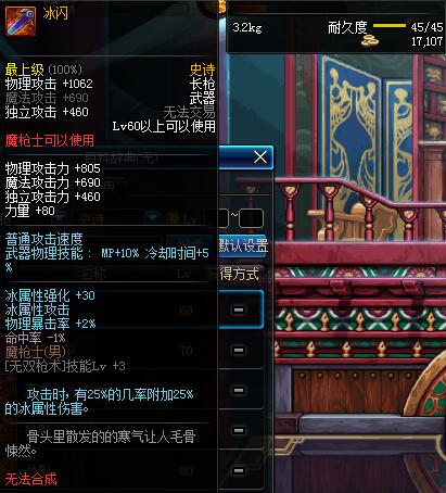 | 60 | (魔法封印)密制零度长枪 | *Lv58~66普通地下城怪物掉落 *完成[消灭机关兵]任务 *使用Lv58~66怪物掉落的设计图进行制作 |