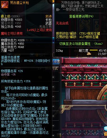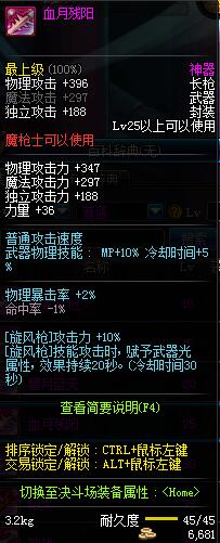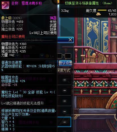 | 30 | 圣物 :血魂冰魄长枪 | *Lv29~36普通地下城怪物掉落 |