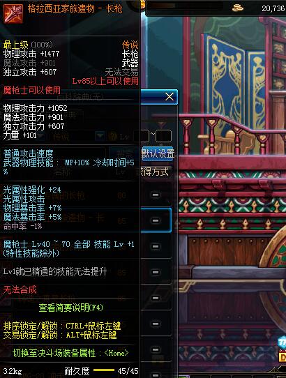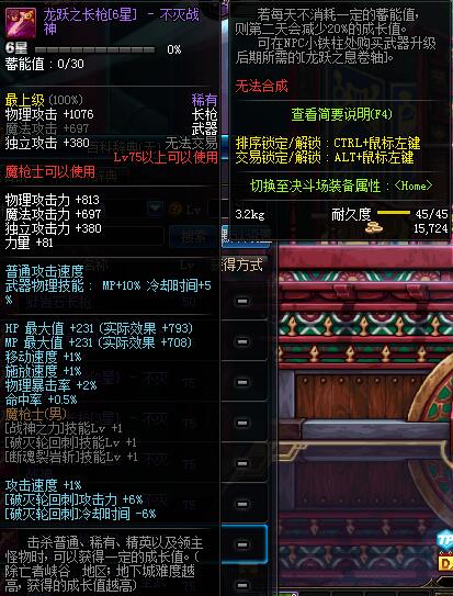 | 50 | 精铸的炫光长枪 | *领主-光之城主赛格哈特 掉落(极光幻境) *在NPC敏泰的物品店购买(阿拉德陨石×285) |