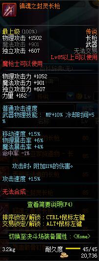 | 85 | 镇魂之封灵长枪 | *时空之门地区 - 吟游诗人艾丽丝 出售 (镇魂之石×100) *购买镇魂武器礼盒(低级镇魂之石×140) |