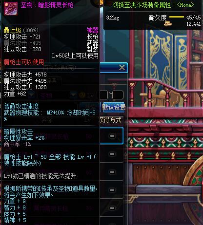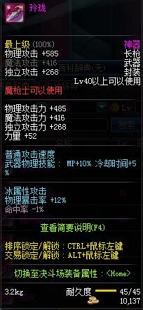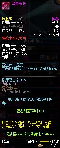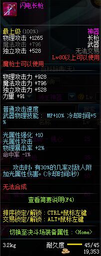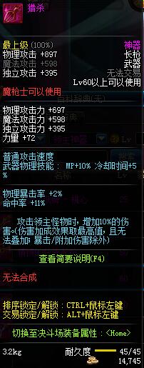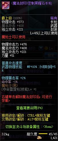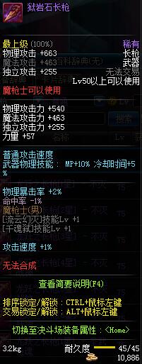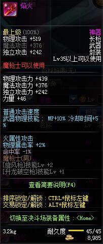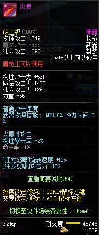| 45 | 圣物 :冥火精灵长枪 | *Lv45~51普通地下城怪物掉落 |