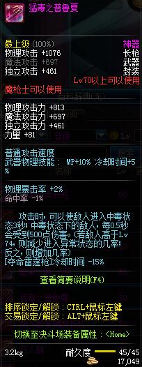 | 10 | 圣物 :神秘的银湖水仙长枪 | *Lv8~14普通地下城怪物掉落 |