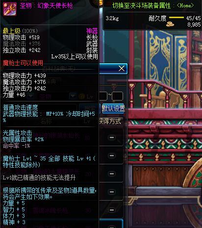 | 35 | 圣物 :幻象天使长枪 | *Lv34~41普通地下城怪物掉落 |