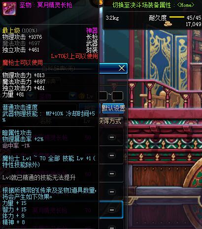 | 70 | 圣物 :冥月精灵长枪 | *Lv70~76普通地下城怪物掉落 |