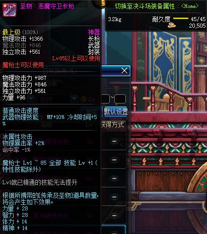 | 85 | 圣物 :恶魔守卫长枪 | *Lv85~91普通地下城怪物掉落 | ||