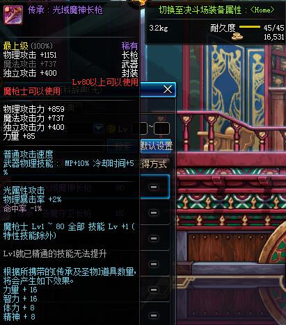 | 80 | 传承 :光域魔神长枪 | |||