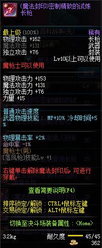 | 15 | (魔法封印)密制练胆枪 | *Lv13~21普通地下城怪物掉落 *完成[专职贺礼]任务 |