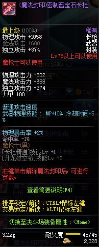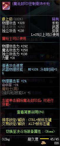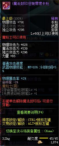 | 80 | (魔法封印)密制锋锐长枪 | *Lv80~86普通地下城怪物掉落 |