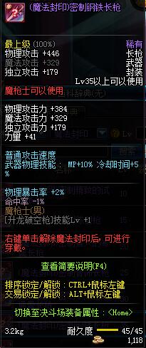 | 35 | (魔法封印)密制钢铁长枪 | *Lv34~41普通地下城怪物掉落 |