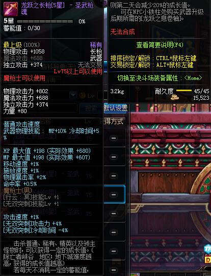 | 75 | 龙跃之长枪[5星] - 圣武枪魂 | *完成二次觉醒任务后可以从NPC小铁柱处获得此道具。 | ||