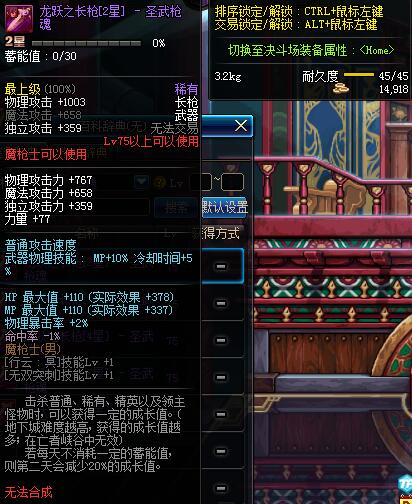 | 75 | 龙跃之长枪[2星] - 圣武枪魂 | *完成二次觉醒任务后可以从NPC小铁柱处获得此道具。 | ||