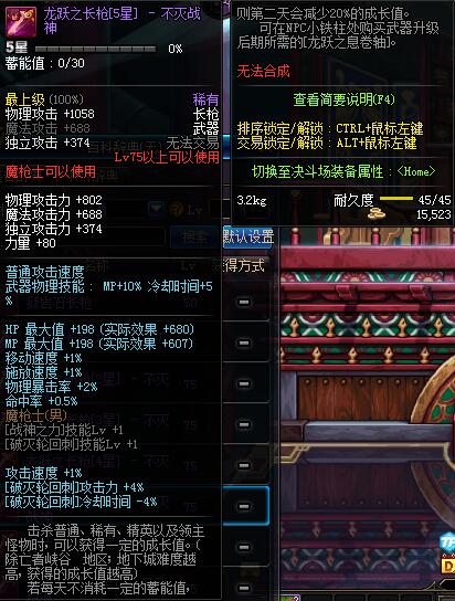 | 75 | 龙跃之长枪[4星] - 不灭战神 | *完成二次觉醒任务后可以从NPC小铁柱处获得此道具。 | ||