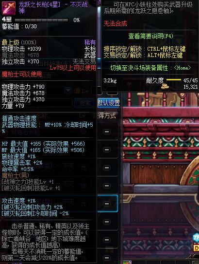 | 75 | 龙跃之长枪[2星] - 不灭战神 | *完成二次觉醒任务后可以从NPC小铁柱处获得此道具。 | ||