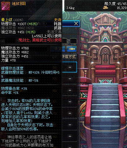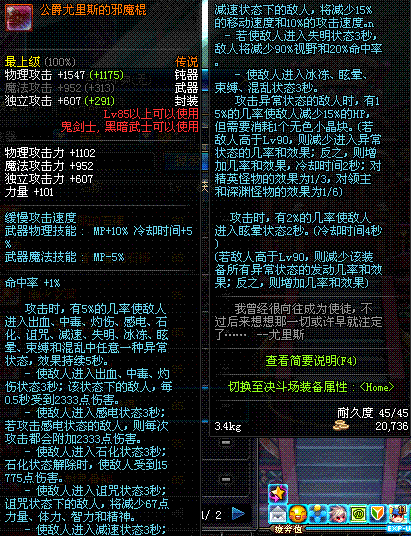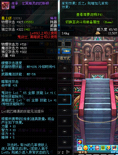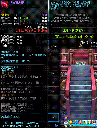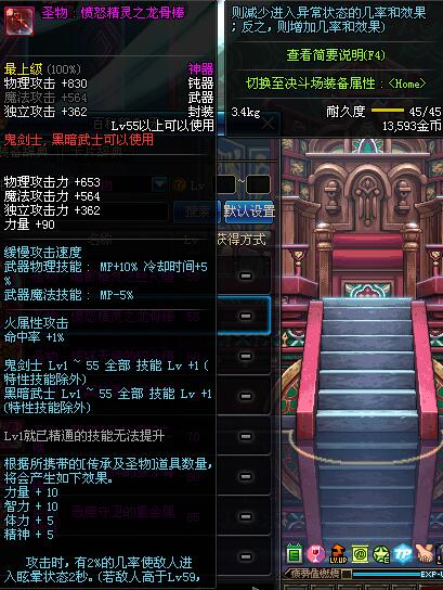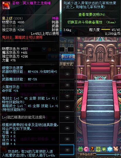 | 45 | 圣物 : 冥火精灵之龙骨棒 | *Lv45~51普通地下城怪物掉落 |