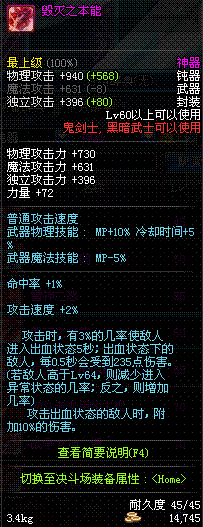 | 60 | 毁灭之本能 | *Lv58~66普通地下城怪物掉落 *在加百利的神秘商店购买 |
