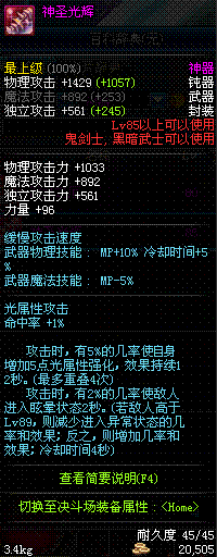 | 85 | 神圣光辉 | *Lv85~91普通地下城怪物掉落 *在加百利的神秘商店购买 |