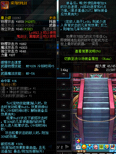 | 85 | 梁月的钝剑 | *Lv84~91深渊地下城怪物掉落 *攻坚队完成安徒恩团队模式的[消灭安徒恩]任务时,获得的奖励。 |