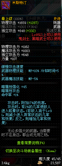 | 85 | 米斯特汀 | *Lv84~91深渊地下城怪物掉落 *攻坚队完成安徒恩团队模式的[消灭安徒恩]任务时,获得的奖励。 |