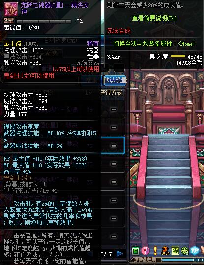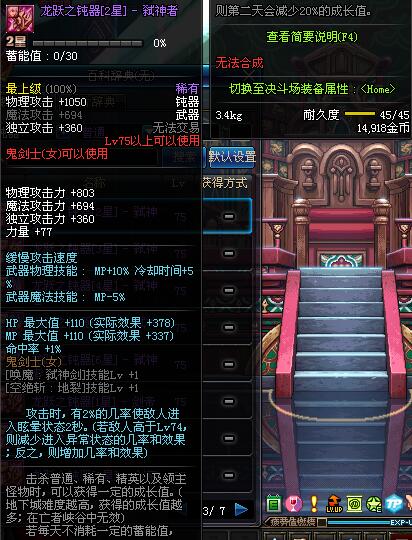 | 75 | *完成二次觉醒任务后可以从NPC小铁柱处获得此道具。 | |||