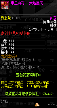| 辅助装备: | 全职业 鬼剑士 女鬼剑 女格斗 男格斗 神枪手 女枪手 魔法师 男法师 圣职者 暗夜使者 守护者 |