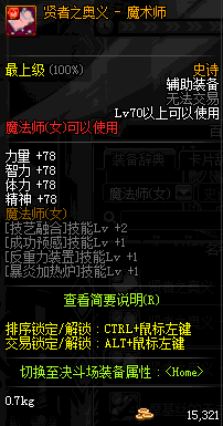 | 史诗 辅助装备- 魔法师(女) | ||||