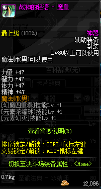 | 辅助装备: | 全职业 鬼剑士 女鬼剑 女格斗 男格斗 神枪手 女枪手 魔法师 男法师 圣职者 暗夜使者 守护者 |