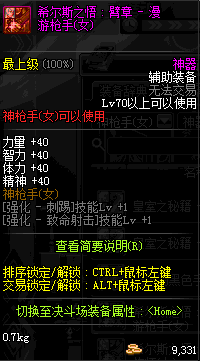 | 鬼剑士 | 神枪手 | 格斗家 | 魔法师 | 圣职者 | 暗夜使者 | 布甲 | 皮甲 | 重甲 | 轻甲 | 板甲 | 饰品 |