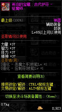 | 辅助装备: | 全职业 鬼剑士 女鬼剑 女格斗 男格斗 神枪手 女枪手 魔法师 男法师 圣职者 暗夜使者 守护者 |
