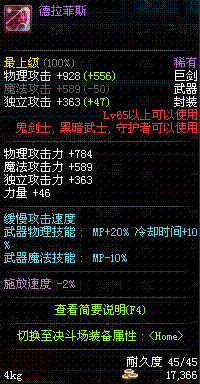 | 55 | 范哲利斯的绝望巨剑 | *范哲利斯 掉落(地下城: 无尽的噩梦) *在NPC敏泰的物品店购买(阿拉德陨石×330) |