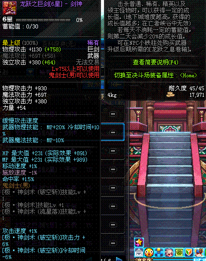 | 45 | 斩铁剑 | *Lv45~51普通地下城怪物掉落 *在加百利的神秘商店购买 |