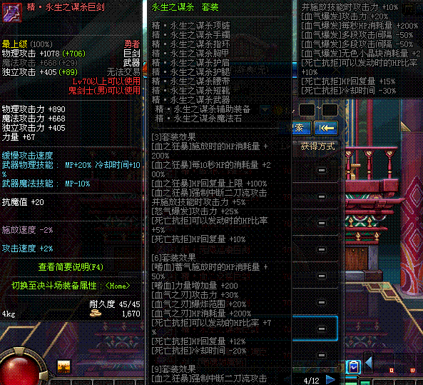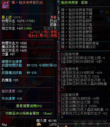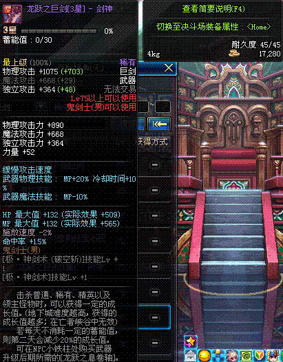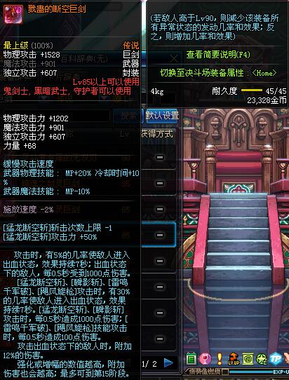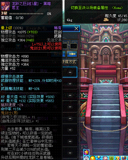 | 45 | 圣物 : 玄月精灵之雕纹巨剑 | *Lv45~51普通地下城怪物掉落 |