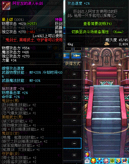 | 40 | 阿甘左的浪人长剑 | *Lv39~46普通地下城怪物掉落 *在加百利的神秘商店购买 |