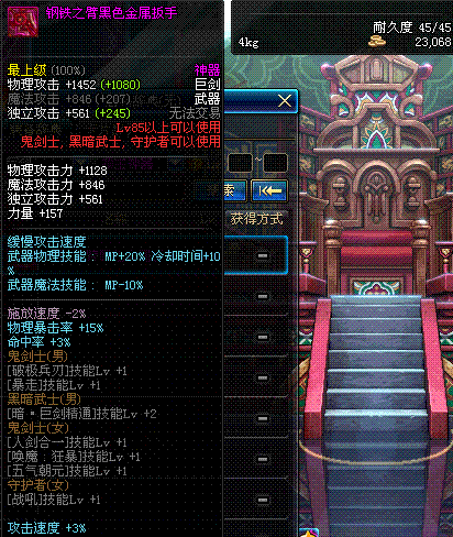 | 85 | 圣物 : 恶魔守卫的裁决巨剑 | *Lv85~91普通地下城怪物掉落 | ||
