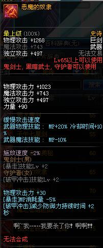 | 85 | 戮蛊的断空巨剑 | *虫王戮蛊 掉落(地下城: 魂:悲鸣洞穴 6图) *设计图(地下城 魂:悲鸣洞穴 登场的NPC加百利 出售) |
