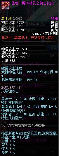 | 40 | 圣物 : 飓风精灵之骑士长剑 | *Lv39~46普通地下城怪物掉落 |