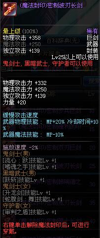 | 25 | (魔法封印)密制波刃长剑 | *Lv24~31普通地下城怪物掉落 *在NPC阿尔伯特·伯恩斯坦的物品店购买 *完成[帝国的险恶用心]任务 *使用Lv24~31怪物掉落的设计图进行制作 |