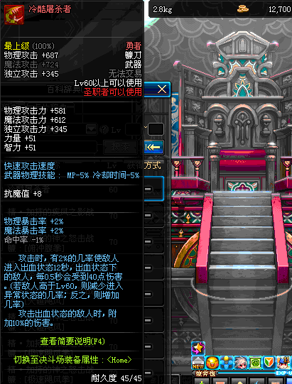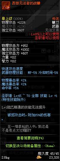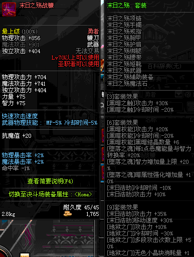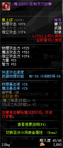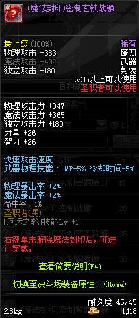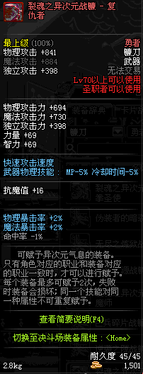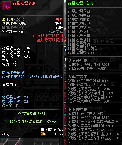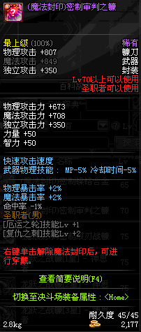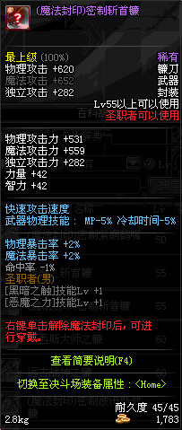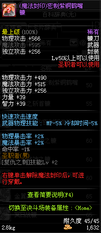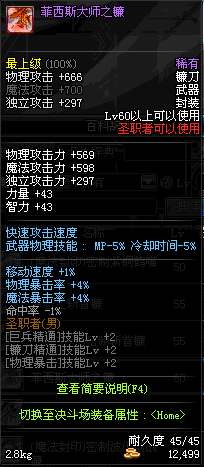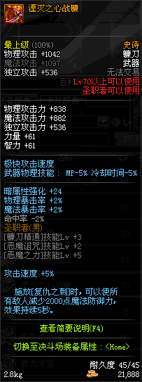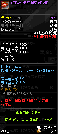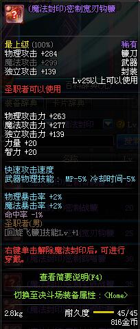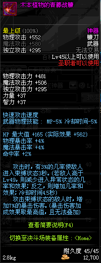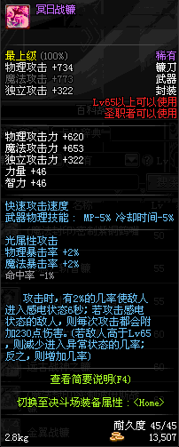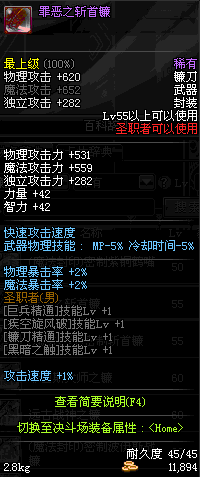 | 45 | 末日浩劫之镰 | *Lv45~51普通地下城怪物掉落 *在加百利的神秘商店购买 |