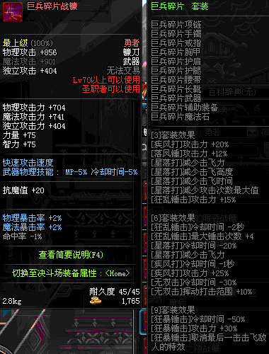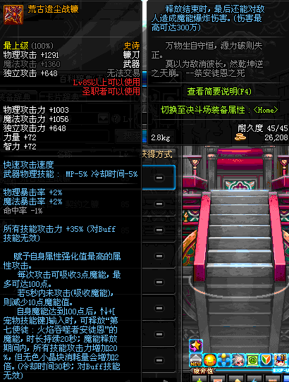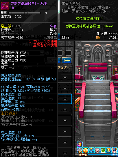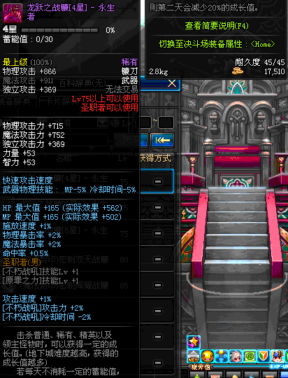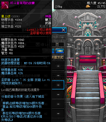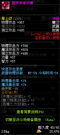 | 75 | 噩梦使者战镰 | *Lv75~81普通地下城怪物掉落 *在加百利的神秘商店购买 |