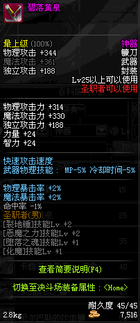 | 25 | 碧落黄泉 | *Lv24~31普通地下城怪物掉落 *在加百利的神秘商店购买 |