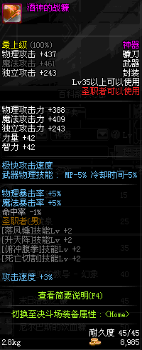 | 35 | 酒神的战镰 | *Lv34~41普通地下城怪物掉落 *在加百利的神秘商店购买 |