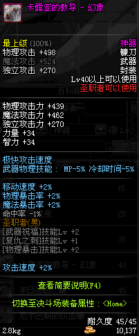 | 35 | 圣物 : 幻象天使之玄铁战镰 | *Lv34~41普通地下城怪物掉落 |
