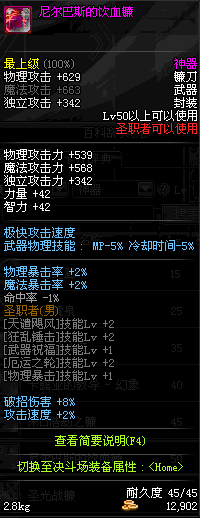 | 50 | 尼尔巴斯的饮血镰 | *Lv50~56普通地下城怪物掉落 *在加百利的神秘商店购买 |